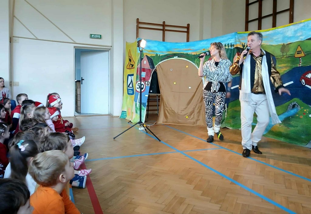 Podczas spektaklu dzieci w atrakcyjny i zrozumiały sposób poznały najważniejsze zasady bezpieczeństwa obowiązujące na drodze – m.in. prawidłowe przechodzenie przez jezdnię, znaczenie kolorów sygnalizacji świetlnej oraz rolę odblasków.