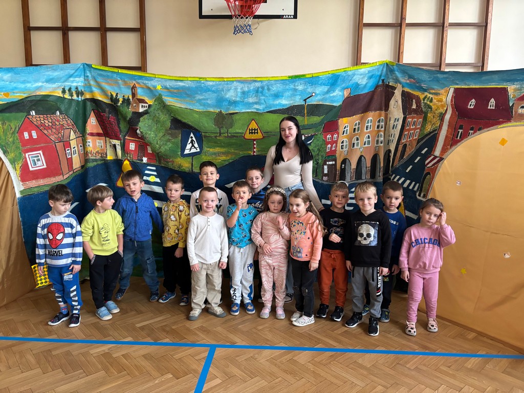Całe nasze przedszkole oraz uczniowie klas I–III wzięli udział w edukacyjnym przedstawieniu zorganizowanym przez Urząd Miasta, którego głównym tematem była bezpieczna droga do szkoły.