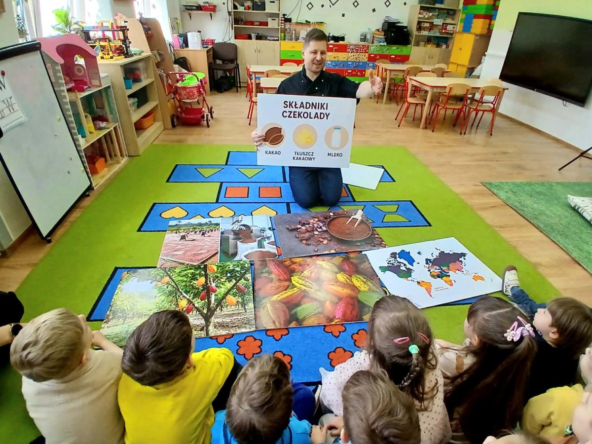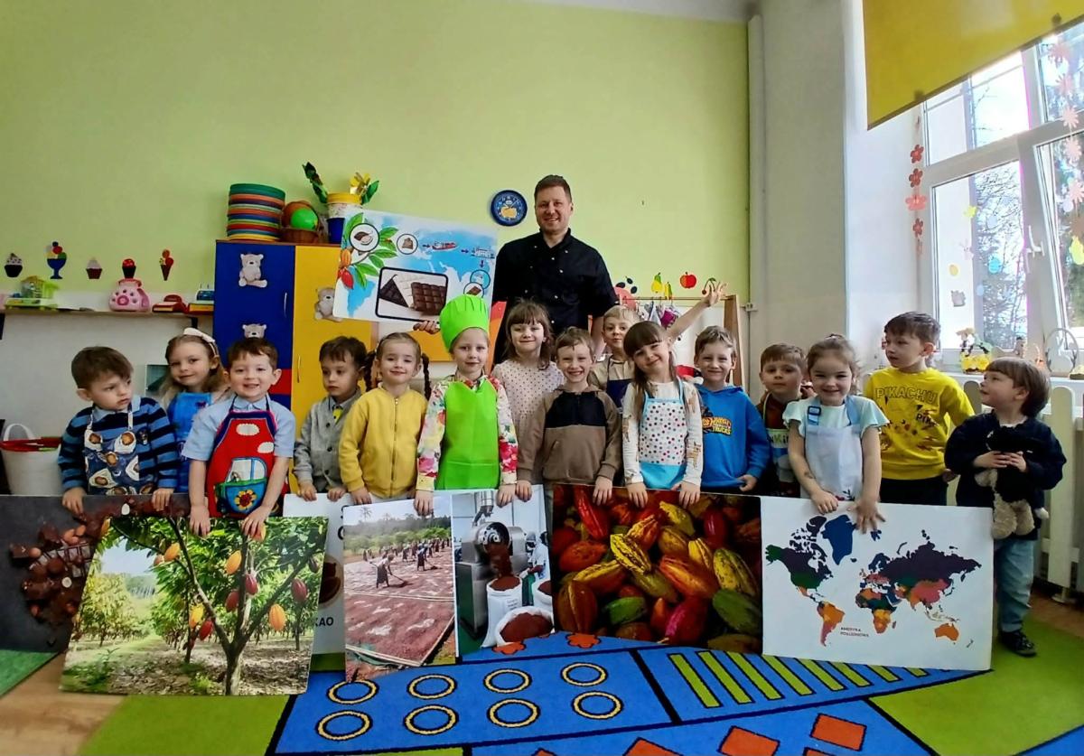 Warsztaty czekoladowe były dla naszych przedszkolaków wyjątkowym i bardzo radosnym sposobem na powitanie wiosny. Dzieci z ogromnym zainteresowaniem poznawały proces powstawania czekolady – od ziaren kakaowca aż po gotowy, słodki przysmak. Największą frajdę sprawiła jednak część praktyczna, podczas której każdy mógł stworzyć własne czekoladowe babeczki. Kreatywność i zaangażowanie dzieci były niesamowite, a efekty ich pracy – nie tylko piękne, ale i pyszne!
